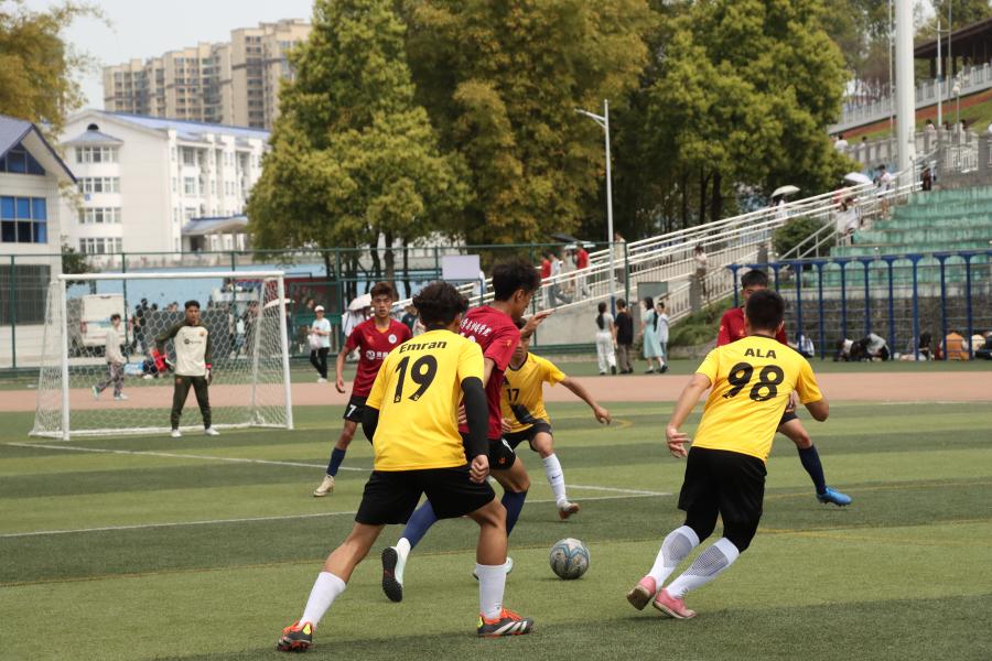 芳菲浸染四月,暖阳倾洒校园。篮球框下激烈拼抢,绿茵场上急速穿梭,铅球在空中划过弧线,毽球在脚下翻飞,处处都是青春的热血与激昂。