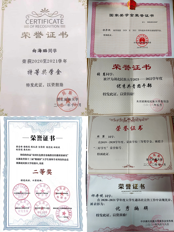 马克思主义学院1219401班学生,张慧考研上岸至西南民族大学学科思政专业,祁丹悦考研上岸至湖北大学马克思主义基本原理专业,向海璐考研上岸至武汉科技大学马克思主义理论专业,向澳年考研至江汉大学学科思政专业,田欣欣考研上岸至华中师范大学马克思主义基本原理专业,曾艳岚已获得高中教师资格证。她们也曾获多类奖项,为未来而努力着。