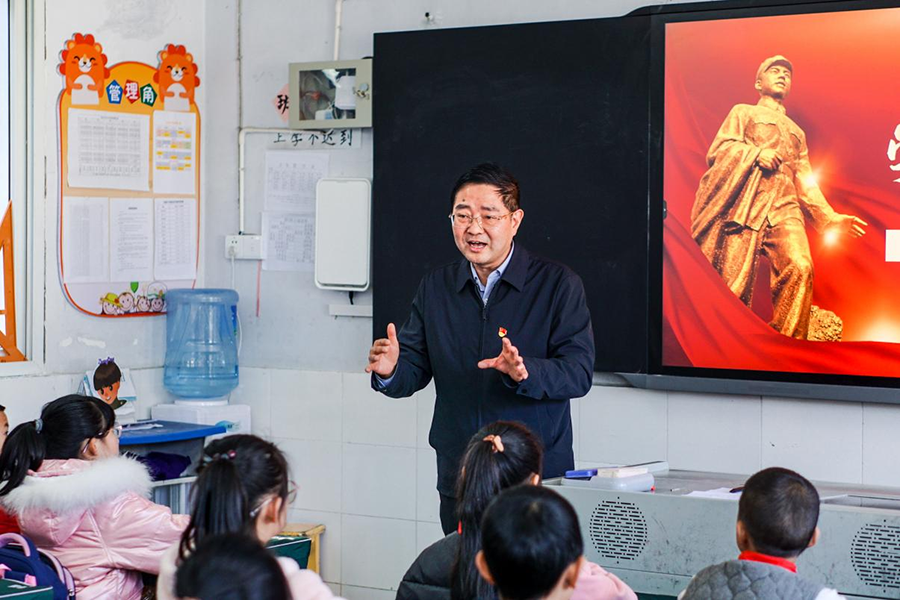 党委副书记邓磊与马前小学学生互动