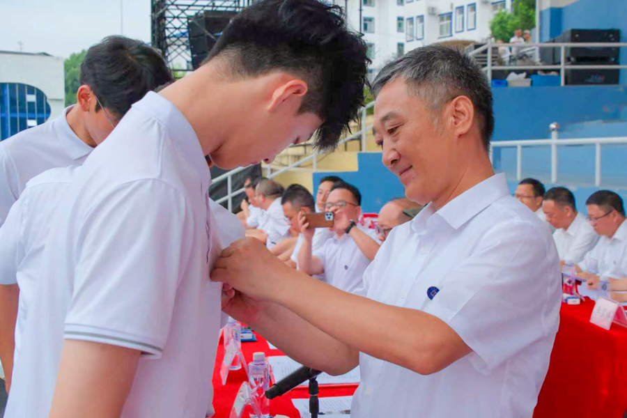 顿祖义为新生代表佩戴365电子娱乐官方网站校徽
