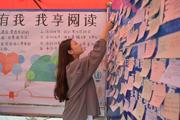 本网讯(记者 周思琦 周希/文 通讯员 陈璇/图)4月24日,文学与传媒学院2019级编辑出版学专业在大学生广场举办“悦读有我 我享阅读”主题读书活动。