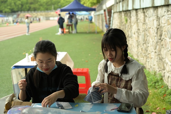 活动分为茶艺表演和游戏环节两部分,现场设置展棚若干。茶艺表演环节,表演者身着汉服,静心凝气,洗盏、盛水、倒茶,过程行云流水,一气呵成,优雅的洗茶具技术和精湛的茶艺表演引得观众连连称赞;游戏环节分为“DIY香包”“猜茶谜”“贴心愿贴”三个部分,完成游戏即可参与集章抽奖活动。“DIY香包”环节,参与者充分发挥想象力,用精美的布料和香料制作专属香包;“猜茶谜”环节,参与者时而冥思苦想,时而对答如流,在充分考验基础茶艺知识的同时也激发学生对茶文化的兴趣;“贴心愿贴”环节,参与者在色彩绚丽的心愿纸上写下心愿贴在棚中,真切传达出自身对未来的美好希冀与展望。