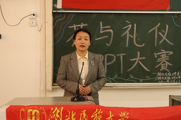 郑泽红点评。她认为此活动意义非凡,有利于学生深入了解茶文化及其礼仪,同时也指出本次活动的不足,建议参赛学生加强茶与礼仪的融合,找到两者的契合点。