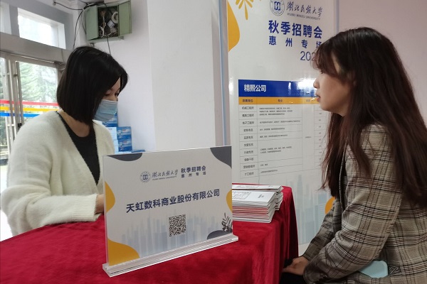 本网讯(通讯员 沙笑竹 见习记者 张嘉纯/文 谭蕊/图)10月18日,我校在行政楼一楼大厅举行2020秋季校园招聘会-惠州专场。此次招聘会共汇集来自广州惠州的13家企业,涉及工程师、销售、翻译、行政等多个行业,为我校应届毕业生提供1600多个就业岗位。