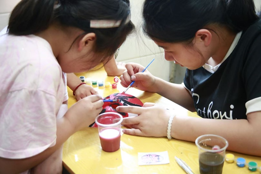 实践团队开设了脸谱制作戏剧特色课程。课程以手工制作脸谱为核心载体,让孩子们在亲手绘制的过程中,触摸戏剧文化的脉络——从色彩象征到图案寓意,每一笔涂抹都是对传统艺术的直观感知。这一过程不仅锻炼了孩子们的动手能力与审美素养,更在趣味互动中播下文化自信的种子,让乡村儿童有机会近距离感受中华优秀传统文化的魅力,弥补乡村艺术教育资源的短板。