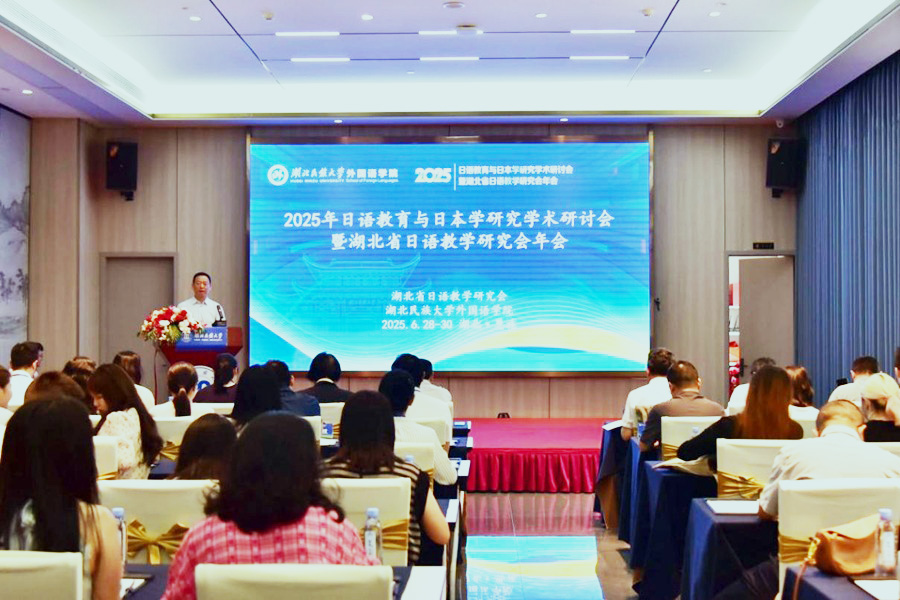 6月29日,2025年日语教育与日本学研究学术研讨会暨湖北省日语教学研究会在恩施开幕。本次会议由湖北省日语教学研究会、365电子娱乐官方网站外国语学院主办,外语教学与研究出版社、上海外语教育出版社、高等教育出版社协办。来自北京外国语大学、西安外国语大学、华中师范大学、华中科技大学、四川外国语大学、重庆交通大学、长春工业大学等30余所高校的专家学者参会。