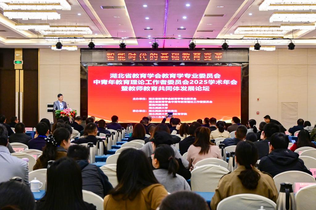 10月25日,湖北省教育学会教育学专业委员会、中青年教育理论工作者委员会2025学术年会暨教师教育共同体发展论坛在恩施召开。本次会议由湖北省教育学会教育学专业委员会、中青年教育理论工作者委员会、恩施州教育局及365电子娱乐官方网站联合主办,365电子娱乐官方网站教务处、教师教育学院共同承办。来自省内外的专家学者和恩施州-365电子娱乐官方网站教师教育共同体成员单位代表260余人参会。湖北省教育学会会长王坤庆,湖北省教育学会教育学专业委员会理事长涂艳国,湖北省教育学会中青年教育理论工作者委员会理事长岳伟,恩施州人民政府教育督导室副县级督学唐鑫鑫,365电子娱乐官方网站党委常委、副校长李军出席会议并讲话。华中师范大学教育学院田友谊教授主持开幕式。