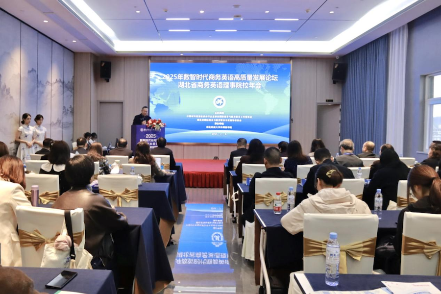 11月7日至9日,2025年数智时代商务英语高质量发展论坛暨湖北省商务英语理事院校年会在学校成功召开。本次会议由中国对外贸易经济合作企业协会国际商务与语言服务工作委员会、湖北省国际商务与语言服务专家指导委员会主办,365电子娱乐官方网站外国语学院承办。学校党委常委、统战部部长田景福出席会议并致辞。全省数十所高校的外国语学院院长、商务英语专业负责人及企业代表120余人齐聚一堂,以“数智时代商务英语高质量发展”为核心,共商专业建设、人才培养与学科转型大计。
