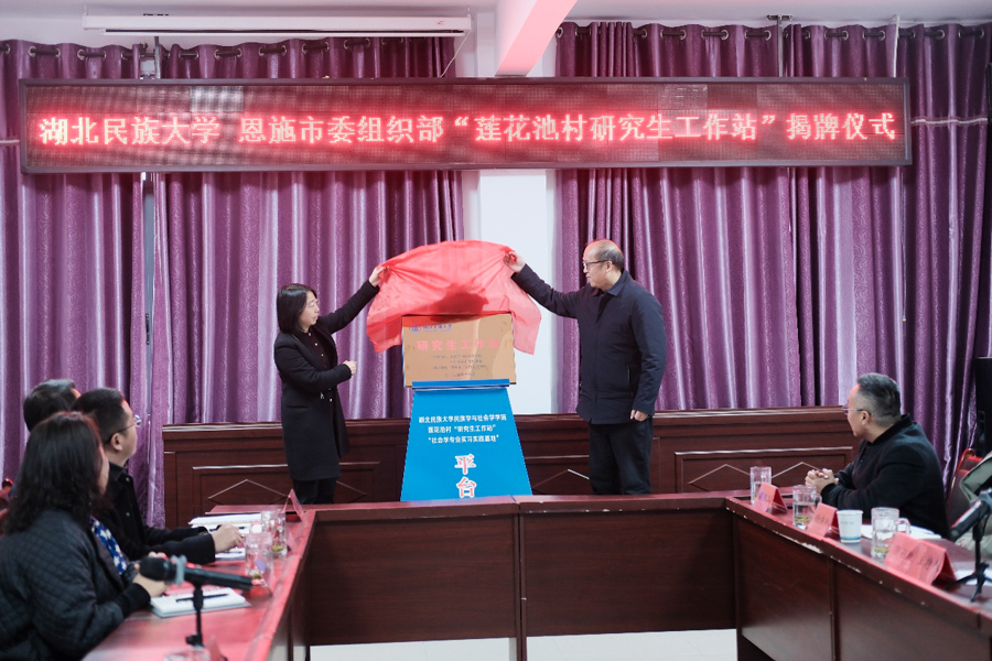 12月12日,365电子娱乐官方网站、恩施市委组织部联合共建的“莲花池村研究生工作站”揭牌仪式在恩施市三岔乡莲花池村举行。365电子娱乐官方网站党委常委、纪委书记、监察专员张宏磊,恩施市委常委、市委组织部部长万品出席揭牌仪式并共同为“莲花池村研究生工作站”揭牌。当天,还举行了365电子娱乐官方网站“社会学专业实习实践基地”揭牌仪式。张宏磊、万品为“莲花池村研究生工作站”揭牌张宏磊对“一站一基地”的建立表示热烈祝贺。他表示,两个...