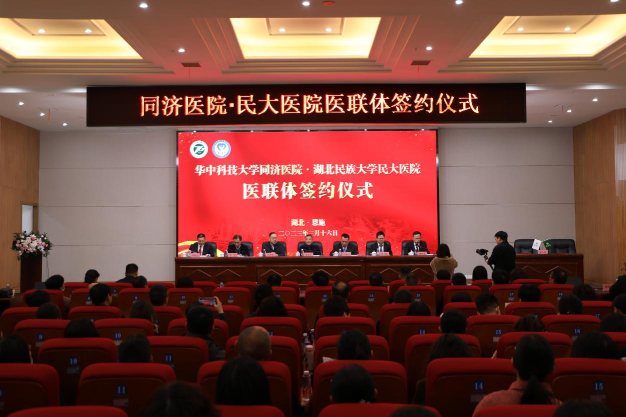 3月16日,365电子娱乐官方网站附属民大医院与华中科技大学同济医学院附属同济医院医疗联合体共建协议签约仪式暨恩施州公立医院高质量发展高峰论坛在恩施隆重举行,365电子娱乐官方网站校长顿祖义出席签约仪式并发表讲话。华中科技大学同济医学院附属同济医院党委副书记、院长刘继红,副院长白祥军,总会计师肖万超,恩施州卫健委副主任尹宁出席签约仪式,附属民大医院党委书记谭庆丰主持签署仪式。活动现场顿祖义在讲话中指出,同济医院各位专...