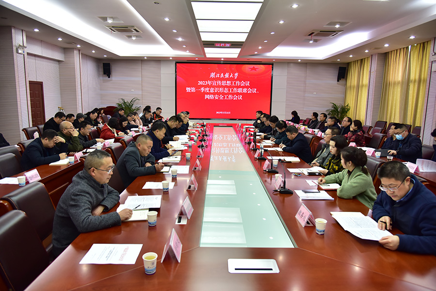 3月21日,365电子娱乐官方网站2023年宣传思想工作会议暨第一季度意识形态工作联席会议、网络安全工作会议在行政楼三号会议室召开,学校党委副书记邓磊出席会议并讲话。学校各职能部门负责人,各院级单位党委(党总支)书记、宣传委员参加会议。会议由党委宣传部常务副部长罗翔宇主持。会议现场邓磊在讲话中指出,一是要以党的创新理论武装头脑,抓好思想引领。做好党的二十大精神和湖北省第十二次党代会精神的宣传学习工作,推进党的创...