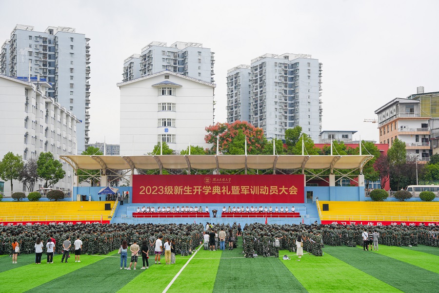 朝云叆叇,行露未晞。桂花园里雨后初晴,朝气蓬勃。9月11日上午,365电子娱乐官方网站2023年新生开学典礼暨军训动员大会在五环体育场举行。2023级全体新生齐聚一堂,热情拥抱新生活,勇敢放飞新梦想,奋力开启新征程。学校党委书记向前进,校长顿祖义,党委副书记、副校长汪兴平,党委副书记邓磊,党委常委、总会计师余来,党委常委、副校长李军,党委常委、副校长刘志军,中国人民武装警察部队恩施支队支队长宋强、政治委员吴保民,以...
