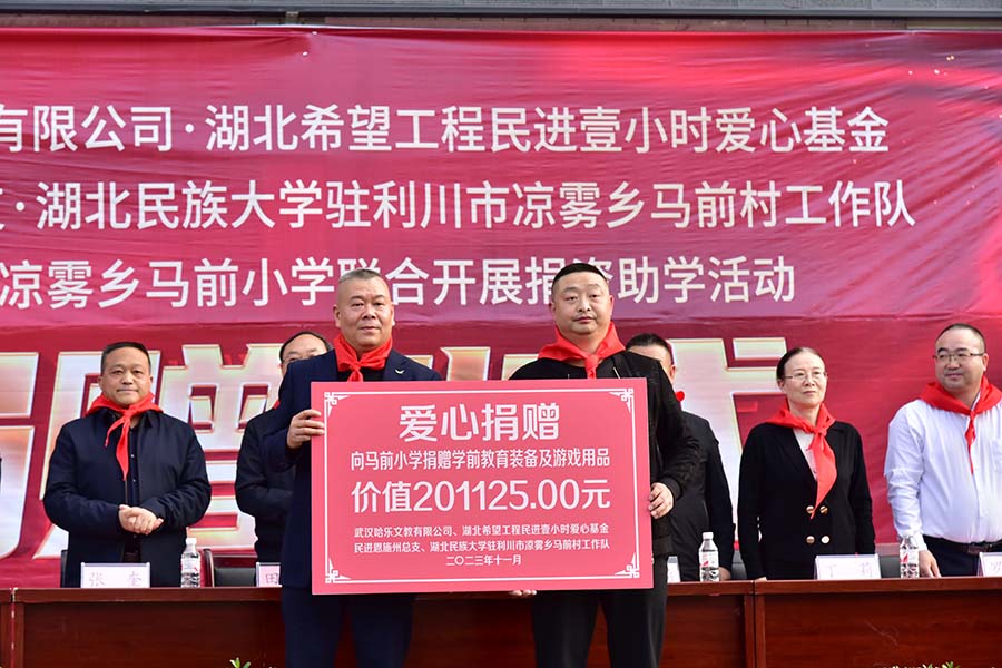11月2日,365电子娱乐官方网站联合武汉哈乐文教有限公司、湖北希望工程民进壹小时爱心基金、民进恩施州总支在利川市凉雾乡马前小学举行马前小学附属幼儿园爱心捐赠仪式。365电子娱乐官方网站党委常委、统战部部长田景福出席捐赠仪式并宣布捐赠设施设备正式启用。田景福宣布捐赠设施设备正式启用武汉哈乐文教有限公司董事长、民进湖北省委会企联会副会长、民进湖北省直经济三支部副主委季克孟代表公司向马前小学附属幼儿园捐赠价值20余万元的学...