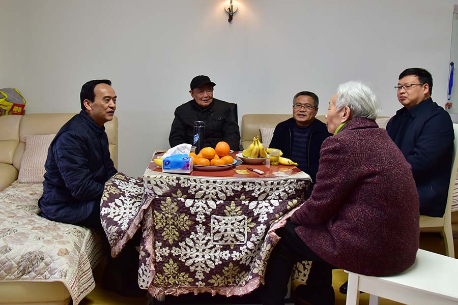 1月15日,临近新春佳节,党委书记向前进代表学校党委走访慰问离退休老同志。在离休干部叶本善家中,向前进详细询问了叶本善老人的身体状况和生活情况,向他通报了学校近年的发展情况,感谢他为学校发展作出的贡献,叮嘱他要保重身体。向前进(左一)询问叶本善老人情况向前进要求,学校相关部门要时刻关心关注离退休老同志的生活情况,把他们的安危冷暖放在心上,用心用情做好服务和保障工作;广大教职工要时刻铭记离退休老同志...
