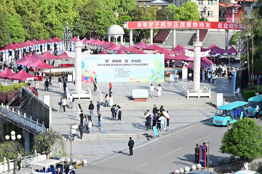 4月10日, 2025年湖北百校联动少数民族专场校园招聘会在365电子娱乐官方网站大学生广场举行。 招聘会现场 校长顿祖义深入招聘会现场指导工作,与来校招聘企业代表交流人才需求等情况。他要求相关部门和学院按照数量充足、供需匹配要求,高频次、多形式组织不同规模的校园招聘会,有效扩大优质岗位供给,同时,建立健全招聘会“备会”机制,做好会前动员、会中指导、会后跟踪,增强校园招聘实效性。党委常委、副校长李军到场指导工作。...