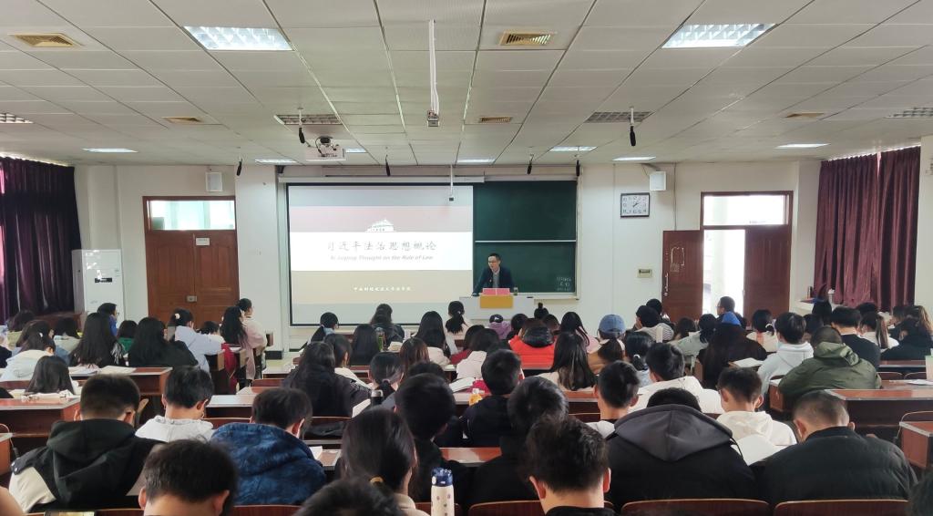 本网讯(记者 张婧 张贵/文 王雅琪/图)11月25日,第九届全国杰出青年法学家、青年长江学者、中南财经政法大学法学院院长陈柏峰教授受邀来法学院讲授习近平法治思想。我校特聘教授朱政担任主持人,近300师生聆听讲座。讲座现场陈柏峰教授首先以习近平总书记在中国共产党第十九次全国代表大会上的报告为出发点,深刻阐述了“坚持依法治国、依法执政、依法行政共同推进,法治国家、法治政府、法治社会一体建设”这一命题具有的重大...