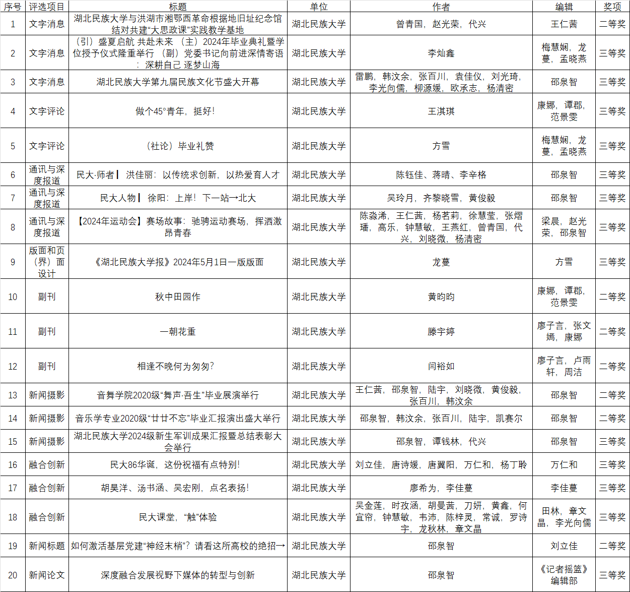365电子娱乐官方网站20件作品获2024年度湖北高校新闻奖