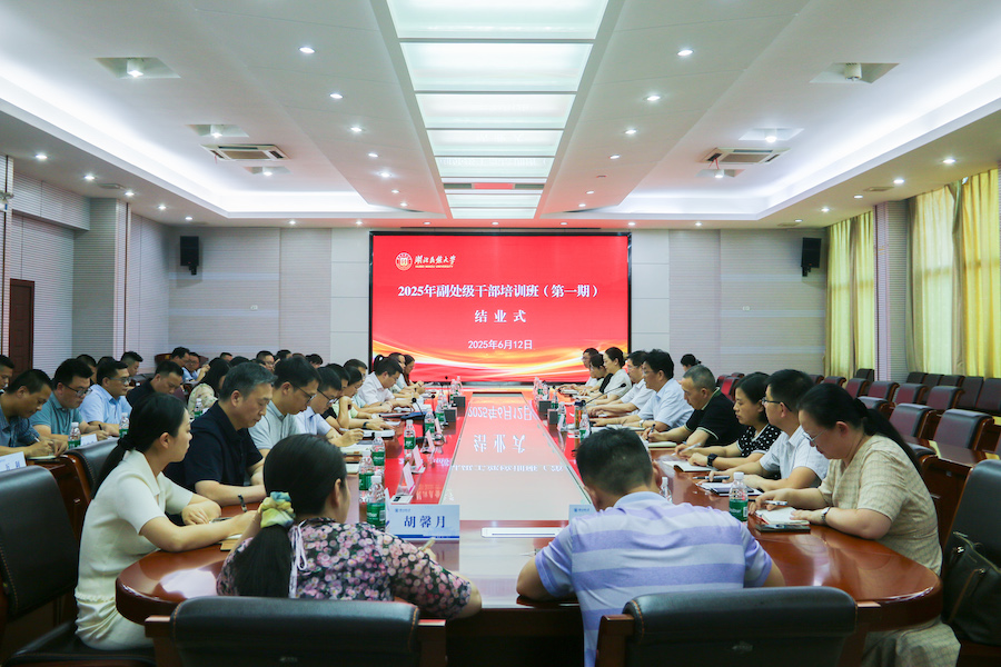 6月12日,2025年副处级干部培训班(第一期)结业式在行政楼三号会议室举行,学校党委副书记、组织部长邓磊出席会议并讲话。会议由党委组织部常务副部长洪雁主持。 结业式现场结业式上,6名学员作了交流发言。邓磊为所有参训学员颁发结业证书。邓磊强调,要树立正确的世界观,不断提高政治“三力”。通过用党的创新理论武装头脑、加强政策学习、熟悉法律法规等方式不断提高政治判断力、领悟力和执行力。要树立正确的政绩观,确保...