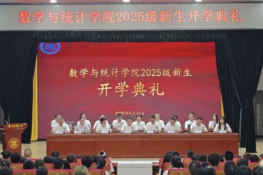 9月10日晚,数学与统计学院2025级新生开学典礼暨本科生新生特色主题团日活动在行政楼一楼会议室举行。优秀校友代表涂晓璇,学院领导,数学系、统计系系主任,各科室负责人,全体思政辅导员,2025级本科生班主任,2025级全体本科生、研究生及学院学生会、团委主要负责人出席典礼。典礼由学院党总支书记魏代俊主持。活动现场典礼在庄严的国歌声中拉开帷幕,全体师生肃立齐唱,气氛热烈。党总支委员、副院长向会立代表学院向2025级...