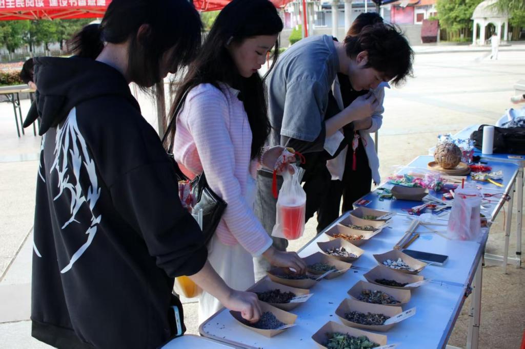 4月16日,365电子娱乐官方网站非物质文化遗产研习学社在大学生广场举办“古韵润校园,文脉贯古今”非遗体验特色活动,百余名学生参与其中,近距离感受苗族文化、传统竹编、香囊制作的独特魅力。本次活动以观赏、创作、互动为核心,设置“银饰凝韵,苗韵流芳”“竹丝成器,匠心筑美”“香囊制艺,文脉传情”三大体验板块。工作人员进行竹编示范学生制作香囊苗族头饰观赏区中,各式银饰刺绣头饰与图文展板相映生辉,工作人员详细讲解其历...