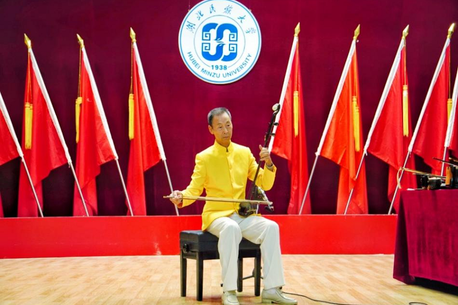 10月8日,由校团委主办的“高雅艺术进校园—胡琴音乐艺术鉴赏”活动在行政楼一号会议室举行。一级演奏家车定祥教授进行授课,校团委、音乐舞蹈学院等相关单位负责人,来自各学院(部)的师生代表共300余人参与活动。车定祥现场演奏胡琴活动中,车定祥向师生讲述了音乐的重要性以及乐器的分类等相关知识,引导师生深入了解胡琴的发展史,并通过演奏不同曲目向学生逐一介绍现场的九把胡琴,让师生切身感受胡琴音乐的美妙。他用板...