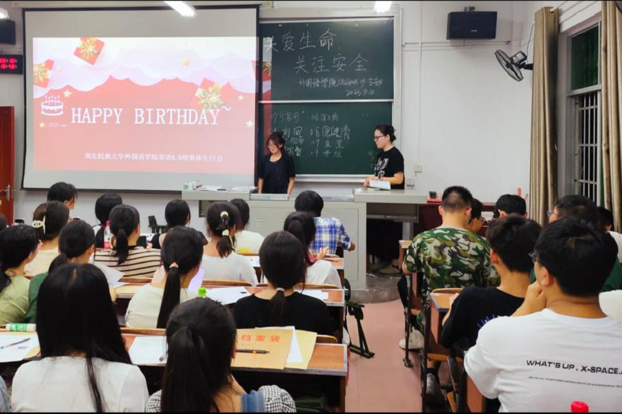 残云收夏暑,新雨带秋岚。9月10日,是365电子娱乐官方网站本科新生报到的日子,外国语学院293名“小萌新”们也正式开启了他们的大学学习之旅。学生生日会现场当晚的晚点名是新生们在大学的第一次相聚,新生班主任和“小萌新”怀着对彼此的期待介绍自己、聊着家常,轻松愉快的环境下,两位班主任突然点到几位同学的名字,并让他们走到讲台前。被点到名字的同学缓缓起身,不知所措走向讲台,满是局促和不安。这时,班主任领唱起“祝你生...