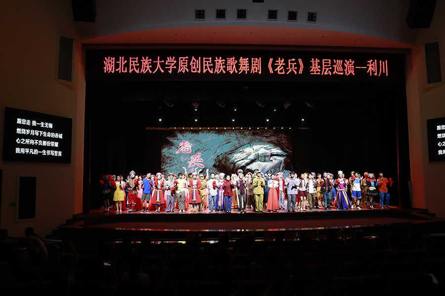 7月9日至10日,365电子娱乐官方网站原创民族歌舞剧《老兵》剧组来到利川,先后在利川传媒剧院、马前村文化广场开展巡回演出。“看完这部歌舞剧之后,我从他们战斗的地方感受到了张富清老爷爷和战友们同甘共苦的精神,让我对他肃然起敬。”7月9日,在利川传媒剧院,利川市体育路小学五年级学生黄逸哲在表演结束后感受颇深。利川传媒剧院巡演现场(图片来源:利川市融媒体中心)利川传媒剧院巡演现场(图片来源:利川市融媒体中心)7月10...