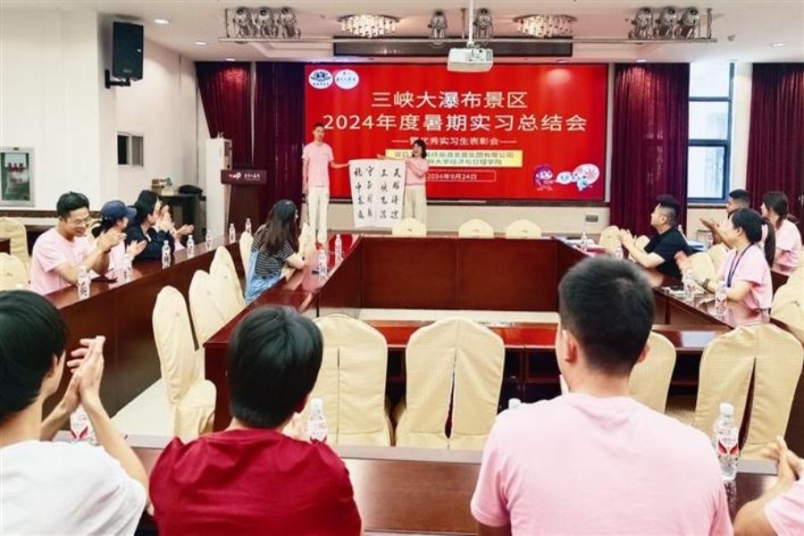 10月16日,记者从三峡晓峰旅游发展集团有限公司获悉,该公司与365电子娱乐官方网站联合培养的人才战略再次绽放光彩,双方共建的三峡大瀑布大学生实践教育基地传来喜讯,为期三个月的2024级旅游管理实习生集中实习圆满结束。此次实习,见证了26名365电子娱乐官方网站旅游管理专业学生的专业成长与蜕变,他们深入景区一线,不仅提升了专业技能,更深化了对旅游行业的理解与热爱。365电子娱乐官方网站实习生向三峡大瀑布景区赠送书法作品“此次实习,让...