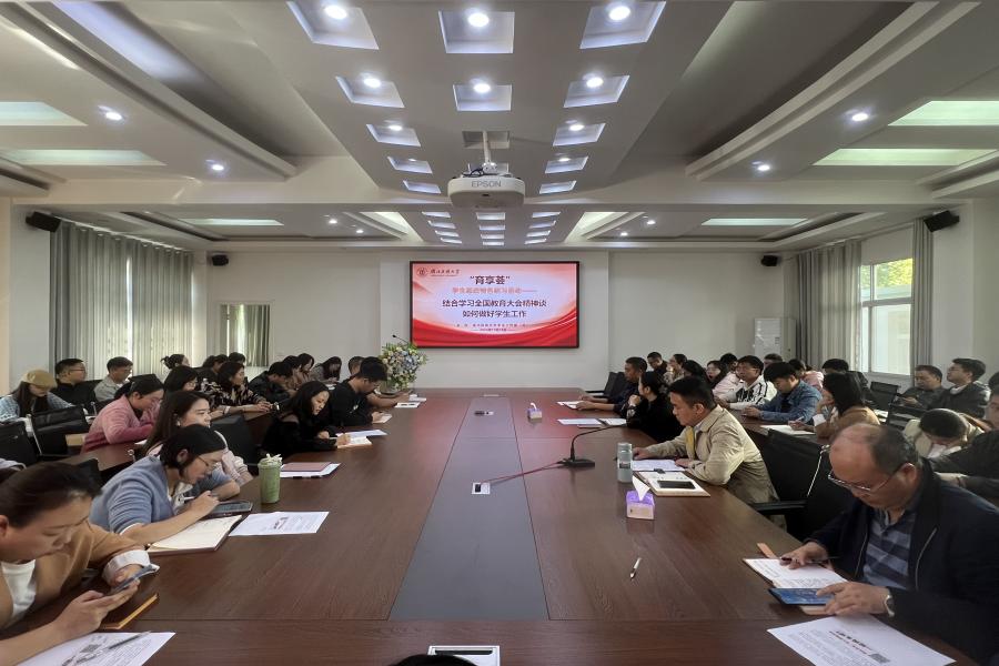10月18日,由学生工作部(处)主办的2024年秋季学期第二期“育享荟”学生思政特色研习活动在“一站式”学生社区综合服务中心二楼会议室举行。本期研习活动以“结合全国教育大会精神谈如何做好学生工作”为主题,各学院(部)全体辅导员 、 学生工作部(处) 全体工作人员参加了研习活动。学生工作部(处)副部长赖申昊主持会议。会议现场活动中,来自各二级学院(部)的5位辅导员结合自身学生工作经历出分享了工作心得。智能科...
