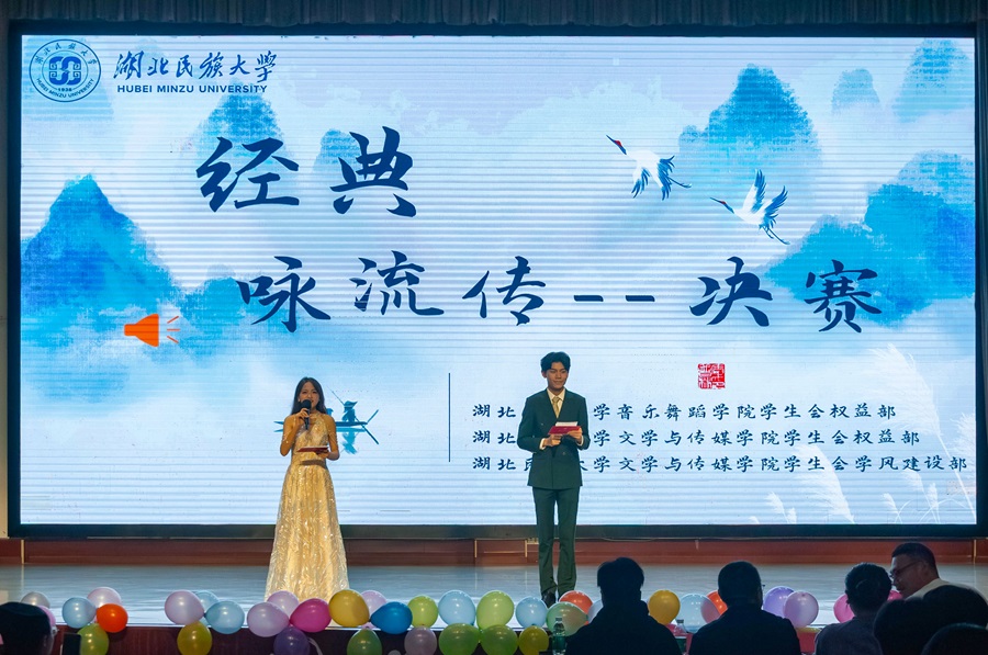 11月2日,音乐舞蹈学院和文学与传媒学院在音舞演播厅联合举办以“学脉流淌求实情,诵读闪亮家国心”为主题的经典咏流传比赛决赛。音乐舞蹈学院团总支书记张翰庭,学生科科长胡自爱,文学与传媒学院老师范生彪、谭若冰受邀参加并担任此次比赛评委。比赛现场经过初赛的激烈角逐,共有十二组选手跻身决赛。选手以诗歌朗诵为主,结合情景、音乐等形式,为观众带来一场视听盛宴。最终,第11号选手胡美娅、钟明瑶、李拉昂措和12号选手...