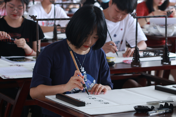 本网讯(通讯员 时吟吟 宋小冬 武亚茹 田忻 记者 李赵龙 陈雨捷)6月20日,文学与传媒学院举办以“学高为师 身正为范”为主题的第十二届师范生教学技能大赛。本次大赛分为书法组、教案设计组、说课组、普通话组、文科综合组、理科综合组六个小组。各院老师受邀出席并担任评委。选手写毛笔字(记者 熊新/摄)书法组比赛在德智楼9B402、409教室举行,分为粉笔、硬笔和毛笔。粉笔字部分,参赛选手按照抽签顺序依次上台,比对老师...