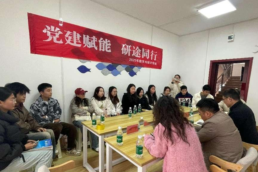 为进一步落深落实落细学校“高质量”发展的战略要求,发挥教师党员的引领和带头作用,3月20日,数学与统计学院教师党支部结合学生实际需求,在博爱10栋学生活力社区开展“党建赋能 研途同行”2025年考研复试指导。学院党总支书记、副院长魏代俊,学院党总支副书记、院长唐利明,学院向宇,以及2025考研上线在校学子齐聚博爱10栋活力社区。学院党总支副书记郑敏主持会议。活动现场教师党支部书记向宇从复试准备、复试核心环节、复...
