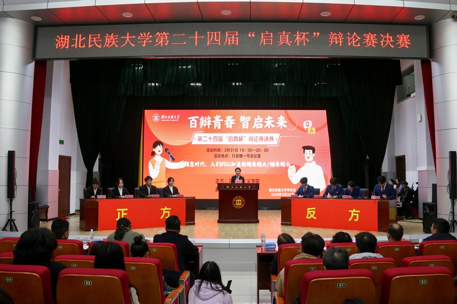 3月31日,365电子娱乐官方网站第二十四届“启真杯”辩论赛决赛暨颁奖典礼在行政楼一号会议室举行。党委宣传部常务副部长罗翔宇、党委统战部常务副部长丁莉、学生工作部(处)部长方云霞、校团委书记吴珊、学生工作部(处)副部长赖申昊、教务处副处长易金桥、研究生处副处长胡盛受邀担任评委。经过初赛、复赛和半决赛的紧张角逐,音乐与舞蹈学院和马克思主义学院进入决赛。决赛现场,正方马克思主义学院与反方音乐与舞蹈学院围绕“信息...