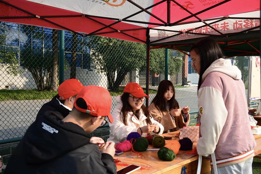 本网讯(见习记者 张百川 王玉然 通讯员 王欣怡)12月5日,文学与传媒学院总支部委员会社会实践与志愿者工作部在民族体育场举办“寒冬围巾暖人心,热忱红绳系我情”志愿活动。活动现场(见习记者 梅春辰/摄)活动现场布置帐篷若干,此次活动共有“暖心围巾”“热忱书签”“祝福手绳”三个活动环节。活动种类丰富,趣味盎然,充分调动现场学生的热情和积极性。参与者正在编织围巾(见习记者 陈雅欣/摄)“暖心围巾”环节中,参与...