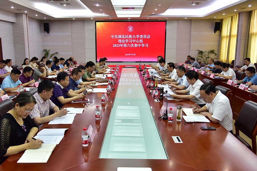 7月5日,学校党委理论学习中心组在行政楼3号会议室开展2023年第六次集中(扩大)学习,校领导、校党委委员,正处级领导干部参加学习。党委书记向前进主持学习。集中学习现场学习以“以学铸魂 以学增智 以学正风 以学促干”为主题。全体人员观看了中央广播电视总台电视新闻报道《习近平在中共中央政治局第五次集体学习时强调 加快建设教育强国 为中华民族伟大复兴提供有力支撑》。党委副书记汪兴平领学了《关于印发<湖北高校领域...