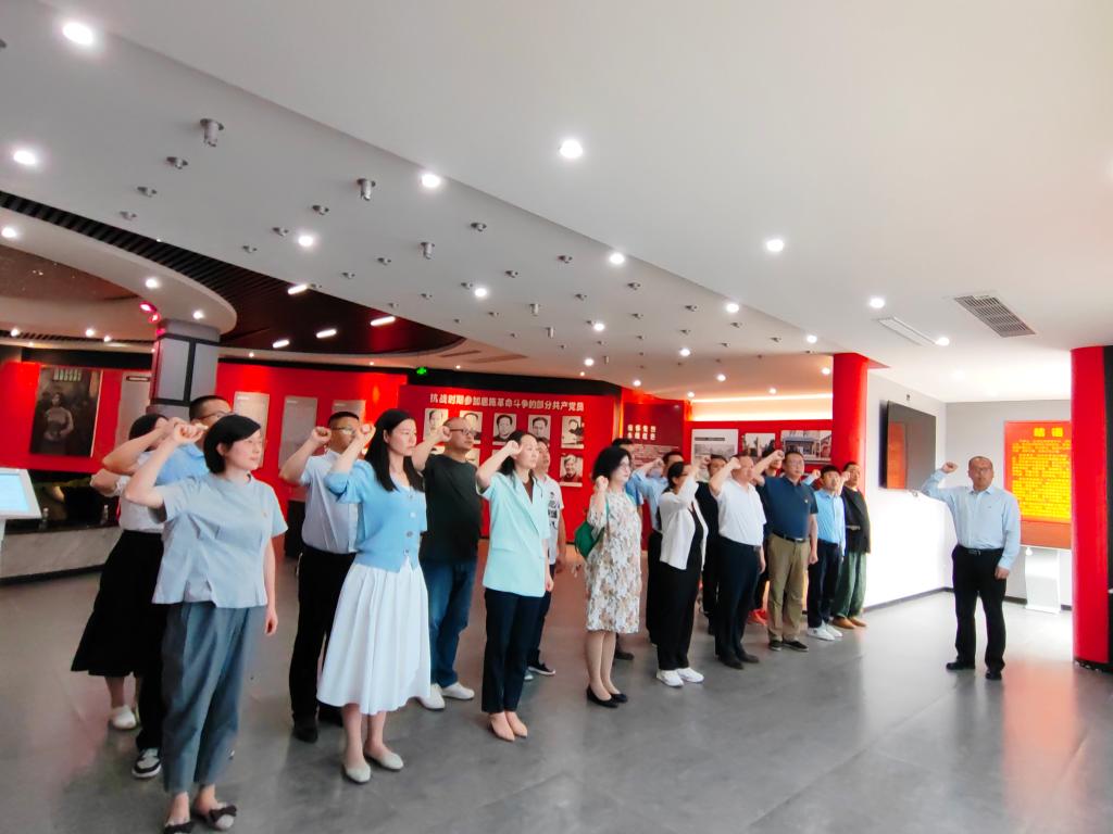 来到入党誓词前,张宏磊同志带领全体党员庄严的举起右拳,重温了入党誓词,“对党忠诚……永不叛党”,洪亮的誓言久久回响在大厅。