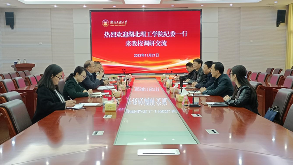 11月21日,湖北理工学院党委常委、纪委书记闵远良一行5人来我校调研交流纪检监察工作。学校党委常委、纪委书记张宏磊出席并主持座谈会,纪委·监察专员办公室、党委巡察办各室主任参加座谈。