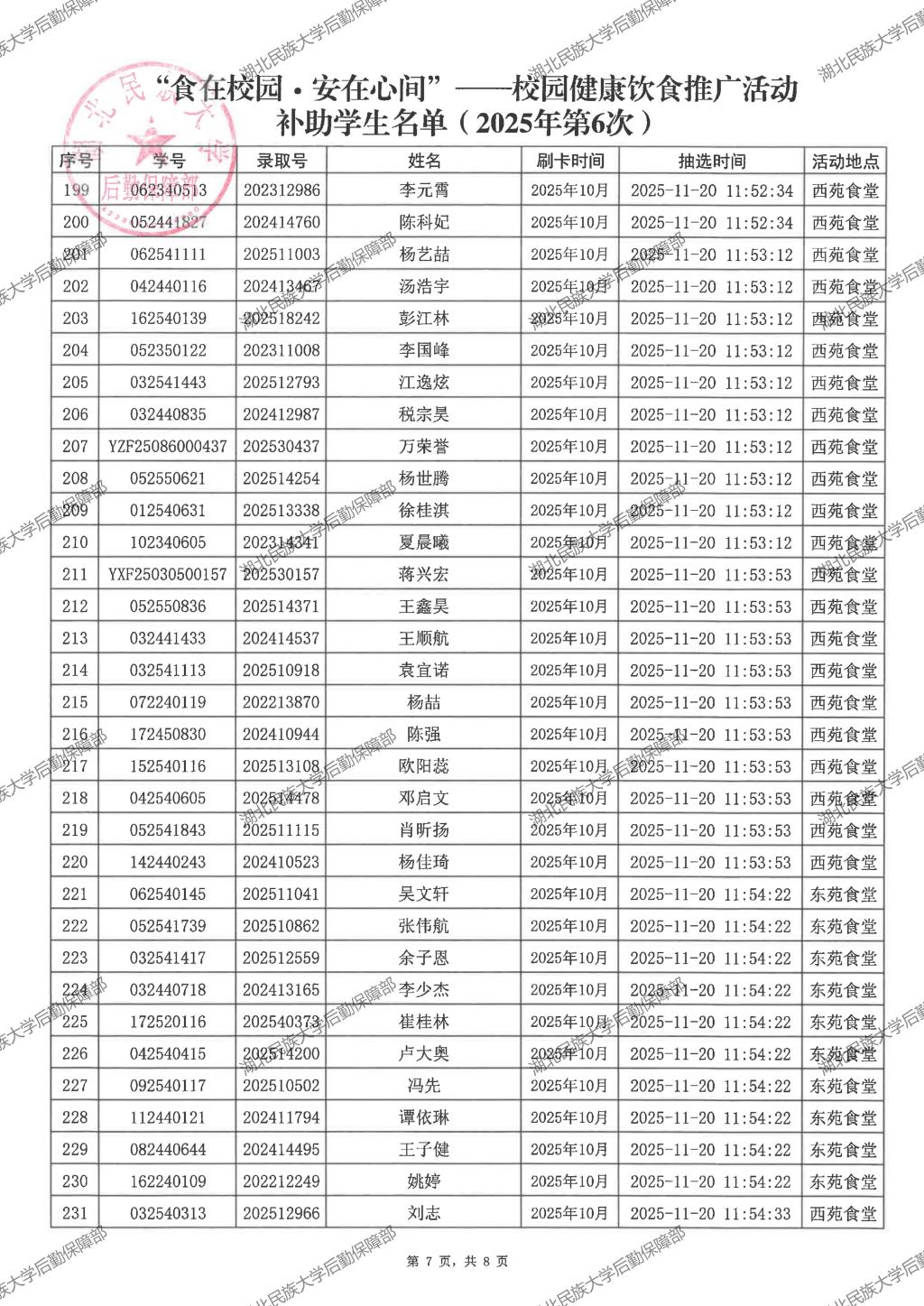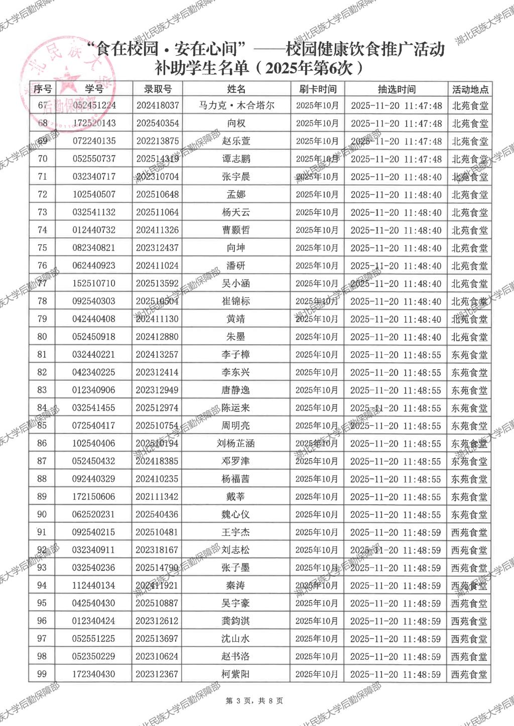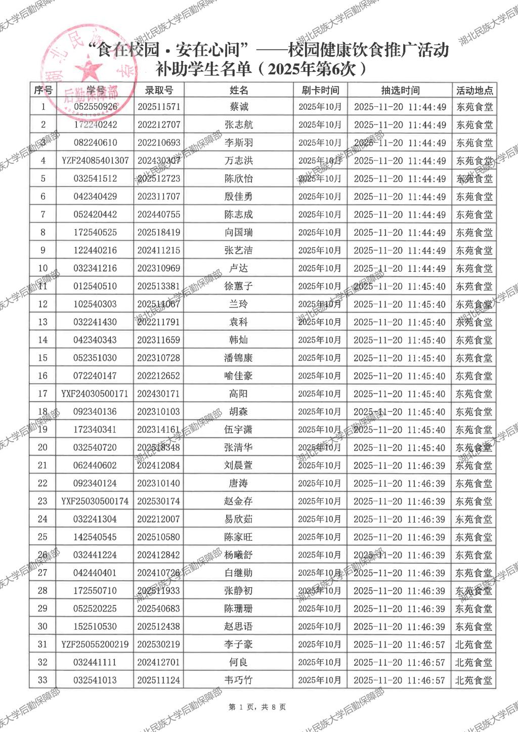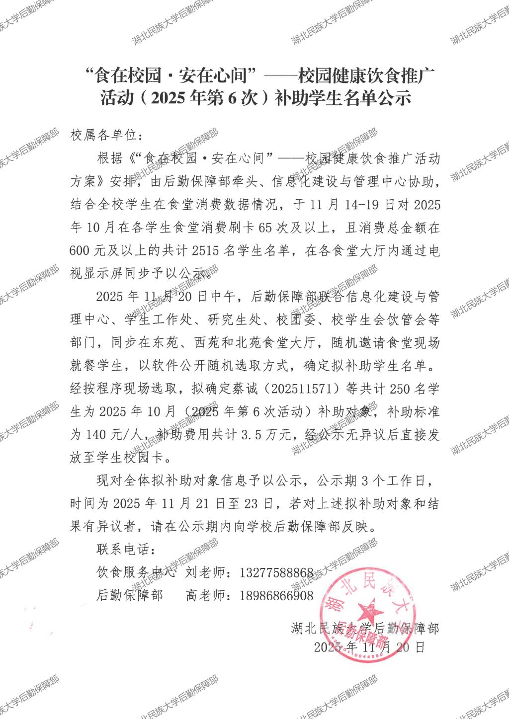 “食在校园·安在心间”——校园健康饮食推广活动(2025年第6次)补助学生名单公示