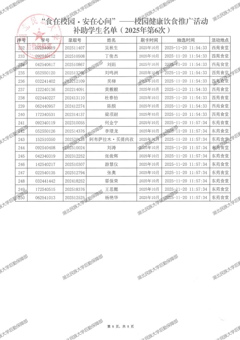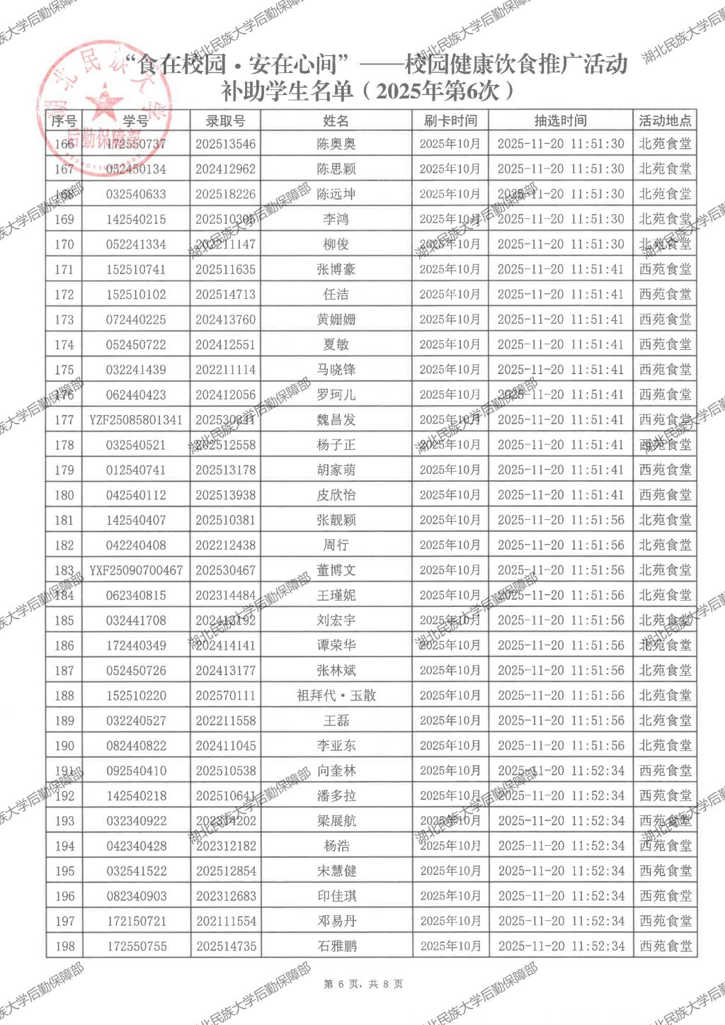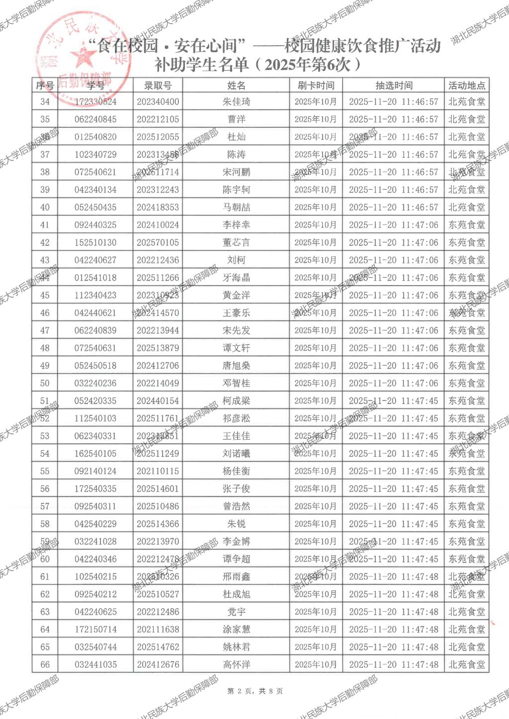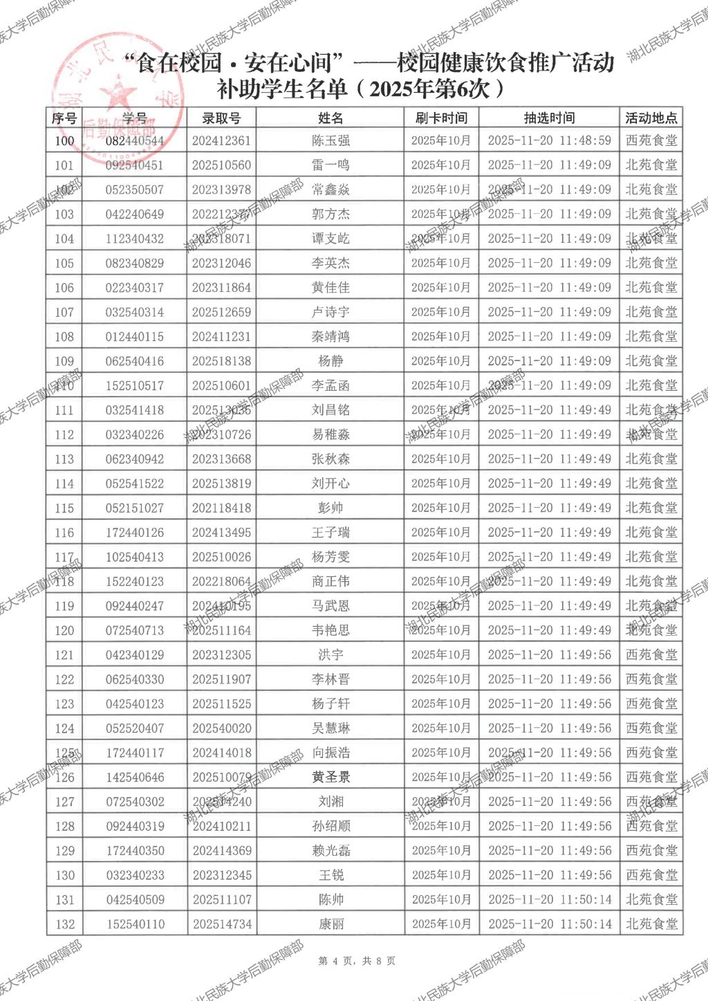 “食在校园·安在心间”——校园健康饮食推广活动(2025年第6次)补助学生名单公示