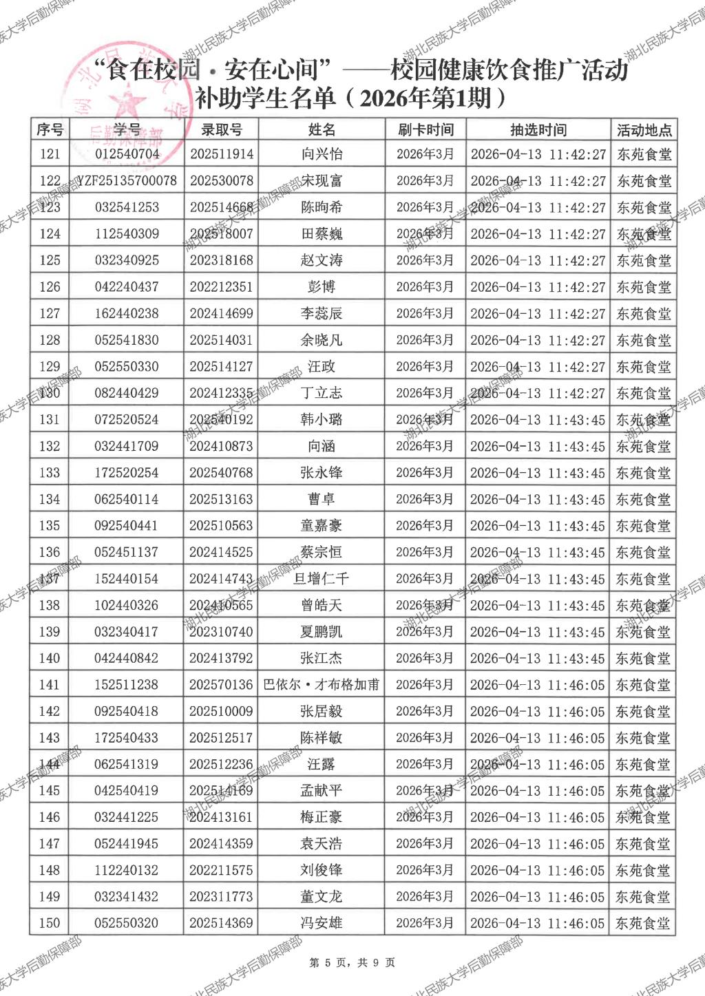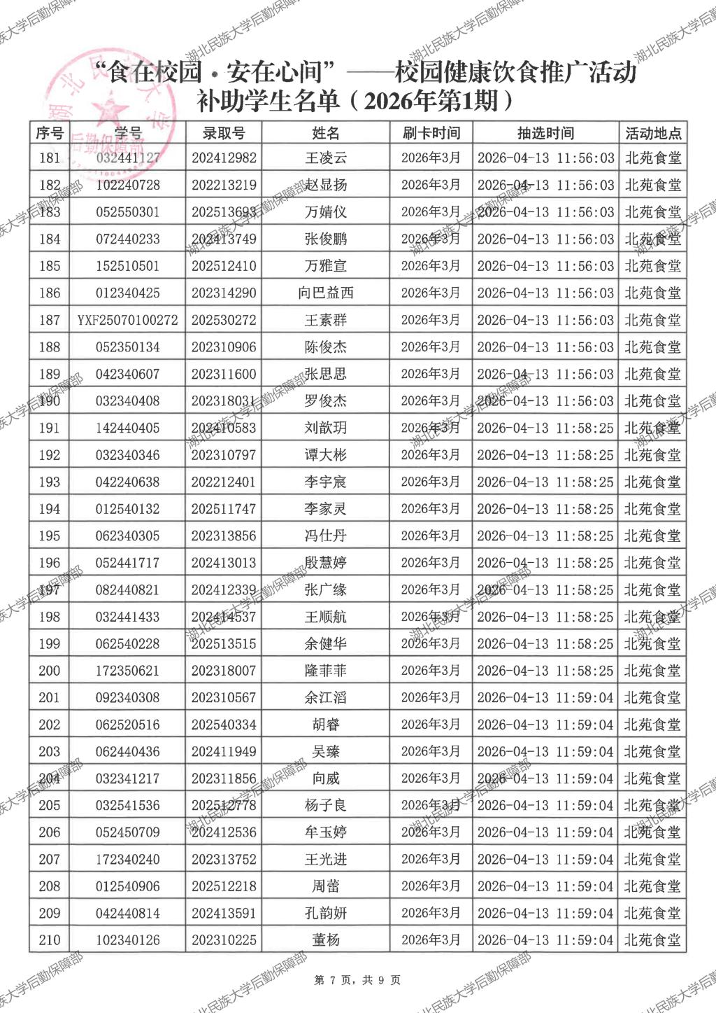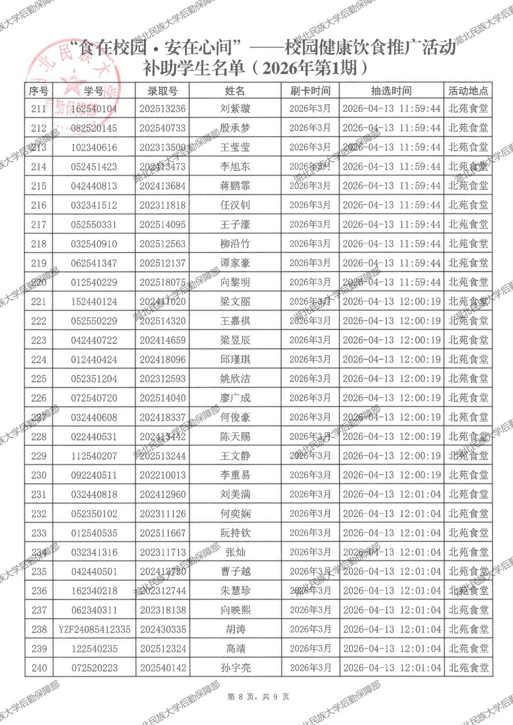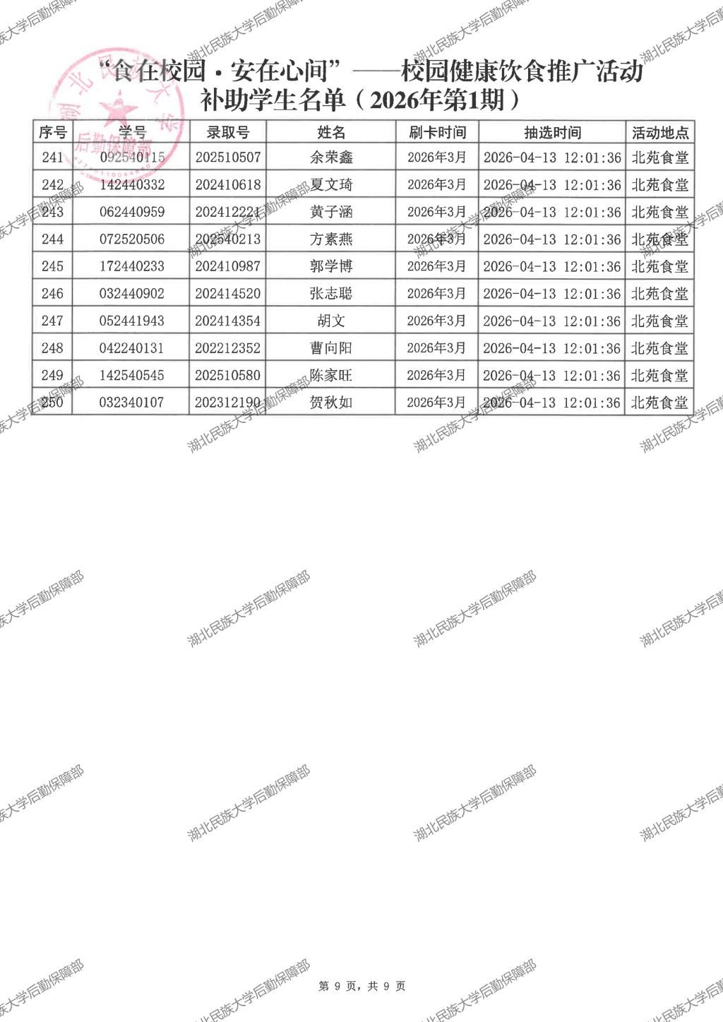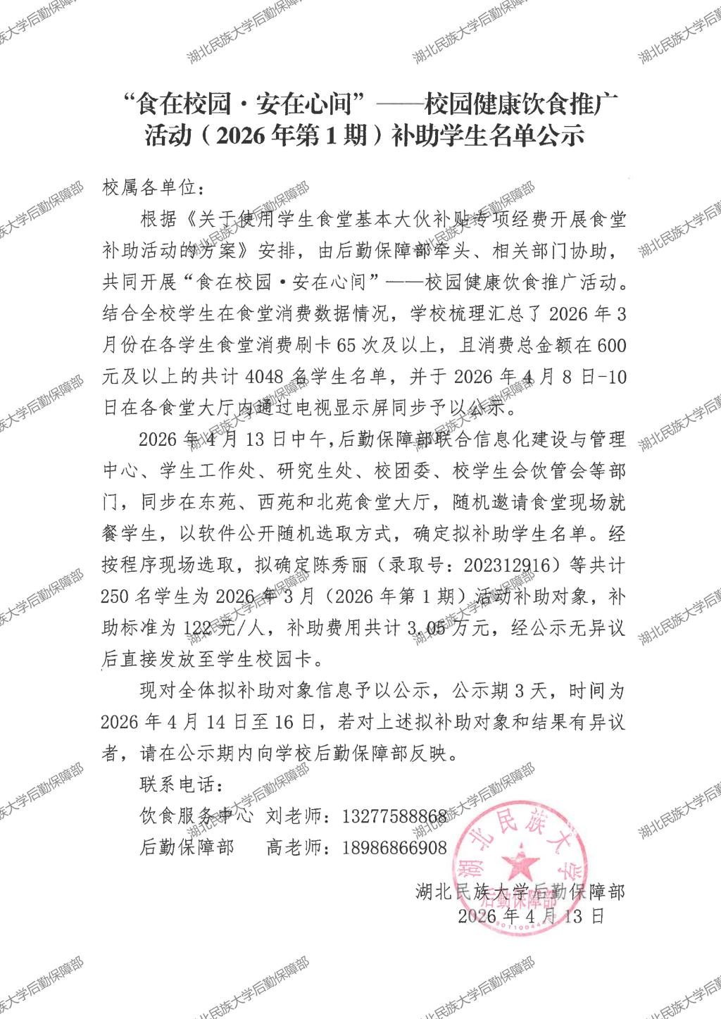 “食在校园·安在心间”——校园健康饮食推广活动(2026年第1期)补助学生名单公示
