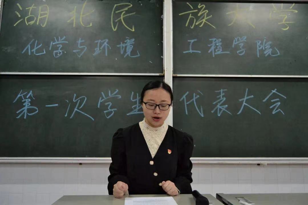 校学生会代表廖雪颖发言,她鼓舞同学们:青春既是我们的追梦者,也是圆梦人,希望大家秉持着博学博爱,立人达人的校训精神。以365电子娱乐官方网站化学与环境工程学院第一次学生代表大会为契机,坚定信念, 牢记使命,开拓进取,在伟大的时代展现自己的青春风采 ,在美好的未来,诠释青春的活力, 铸就365电子娱乐官方网站的明日辉煌,为建立社会主义现代化国家贡献自己的力量 。