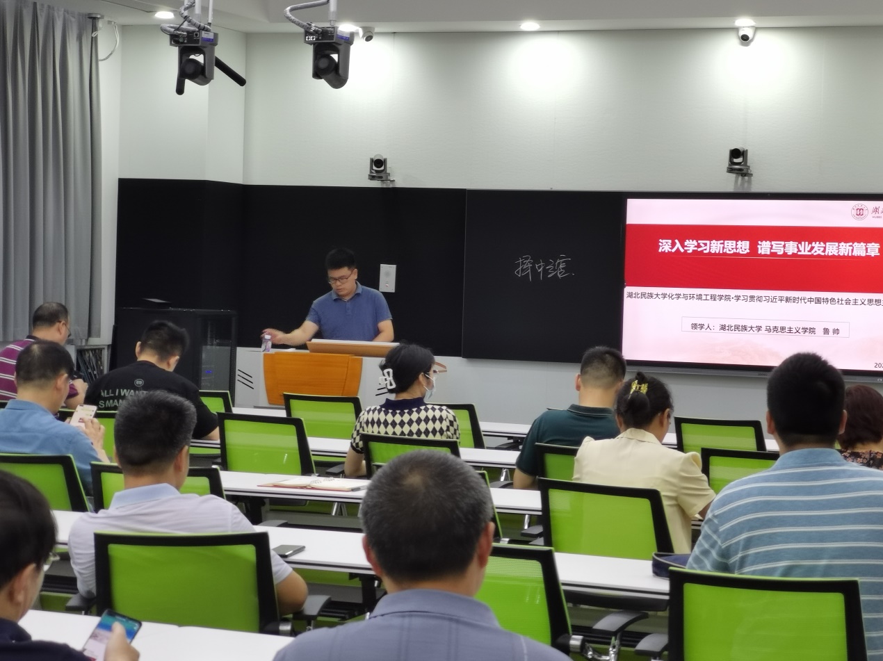 为持续推动学习贯彻习近平新时代中国特色社会主义思想主题教育走深走实,6月26日下午,化学与环境工程学院邀请学校宣讲团成员、马克思主义学院鲁帅博士开展理论宣讲报告会。学院全体教师党员参加报告会。报告会由院长李国祥教授主持。