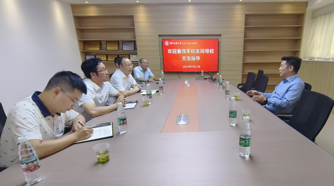 9月11日,化工工艺专业1994级校友、广东天承科技股份有限公司董事长童茂军应邀回母校访问。我院党总支书记桑秋章、院长李国祥、党总支副书记刘应煊、副院长胡盛在学院206会议室接待童茂军,并进行充分交流。