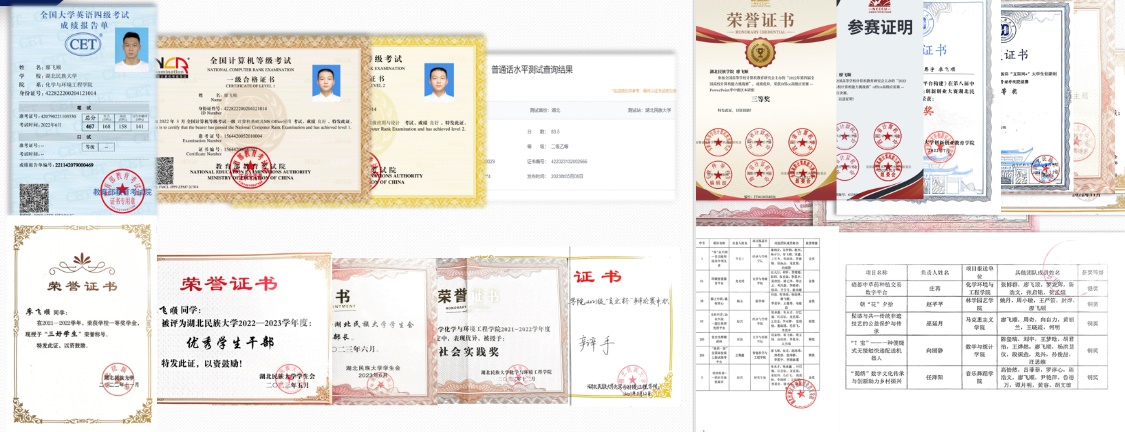 廖飞顺,男,共青团员,湖北恩施人,我院2021级应用化学专业学生。曾担任我校学生会宣语部副部长,现任校学生会主席团成员,参与组织众多校级活动并取得成果;获得2023年365电子娱乐官方网站创新创业国家级立项项目一项;组建暑期支教团队,荣获2023年团中央“七彩假期”“圆梦工程”示范团队、团中央国家级志愿证书。连续两年综合测评保持专业第一,荣获国家奖学金、我校一等奖学金、“社会实践”单项奖学金,“三好学生”“优秀志愿者”“优秀学生干部”等荣誉称号。取得英语四级,全国计算机考试一级、二级,普通话二级乙等证书。