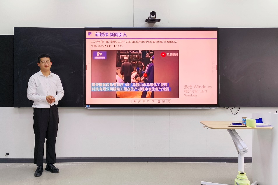 教学综合技能组比赛包括即席演讲、教学设计及课件制作、模拟授课三个环节,选手抽签选题,准备五分钟后演讲三分钟,随即展示课件并进行模拟授