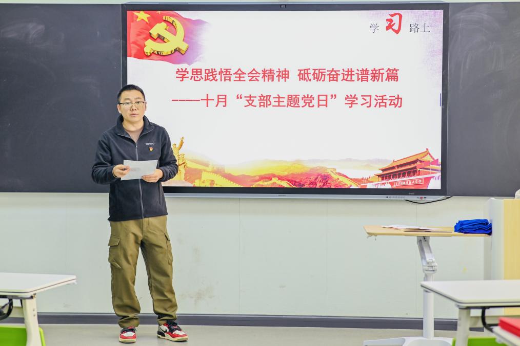 本网讯(通讯员张兰贾沁张增光/文郑浩鑫刘永康吴世荣/图)为深入学习贯彻党的二十届三中全会精神,进一步提升支部党员的思想认识与政治素养,10月31日,我院本科学生党支部在2205教室开展"学思维践悟全会精神,砥砺奋进谱新篇"主题党日活动。我院党总支书记桑秋章、副书记张妮艳,教师党员彭召元、覃昕、胡博宇及全体本科生党员参加此次活动。