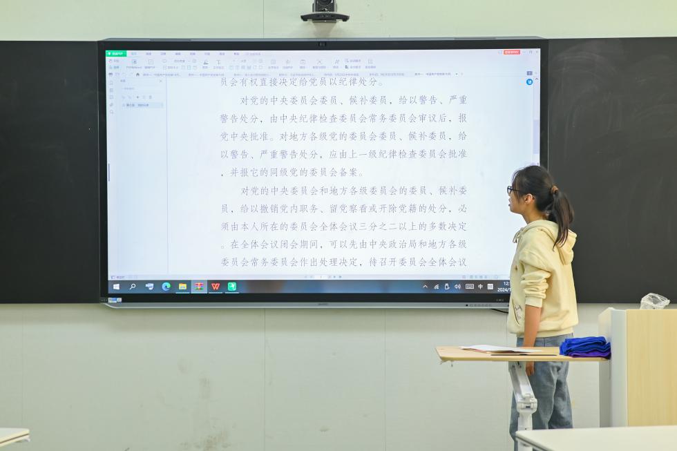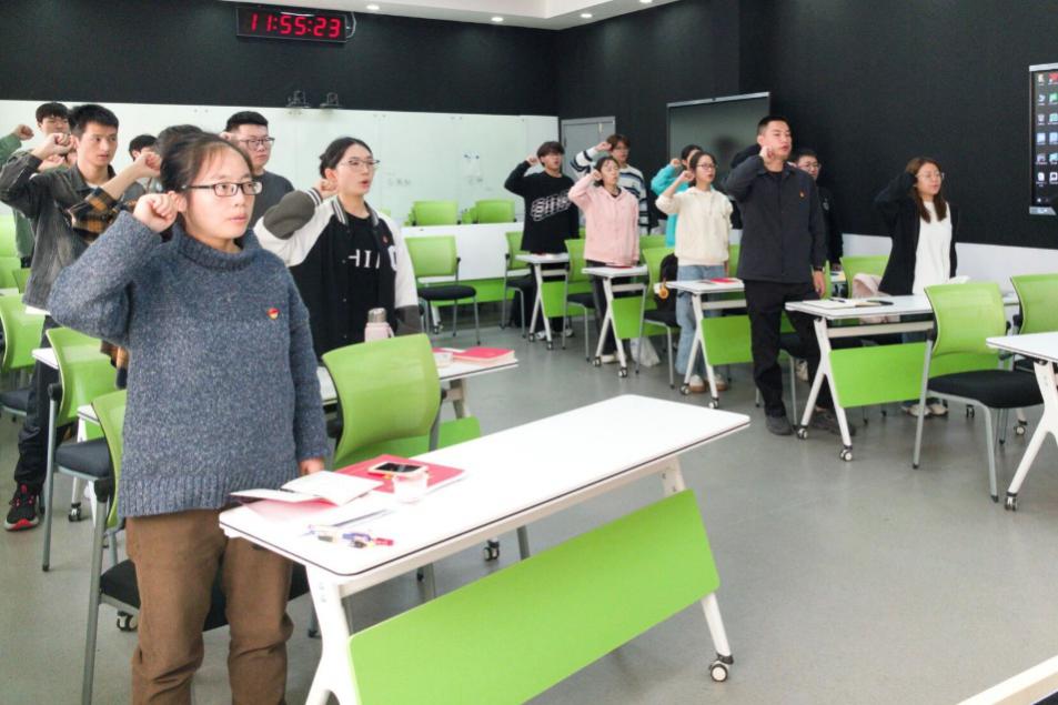 在组织全体党员交纳党费、重温入党誓词后,学生党员周萌萌领诵《党章》第七章第四十二条、第四十三条、第四十四条的相关内容。