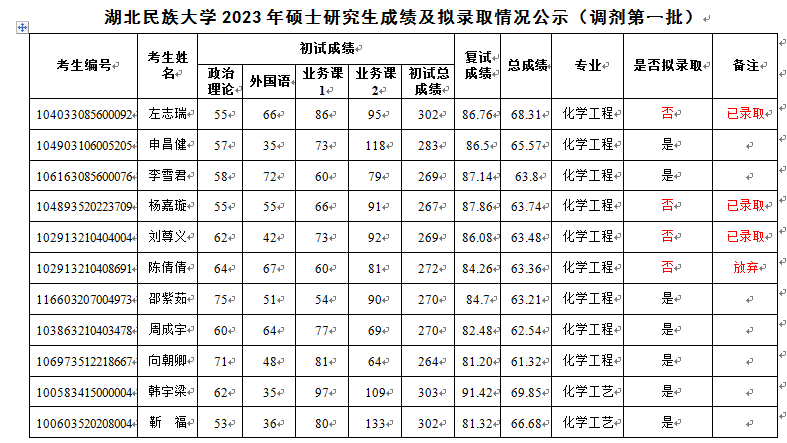 365电子娱乐官方网站2023年硕士研究生成绩及拟录取情况公示(调剂第一批)