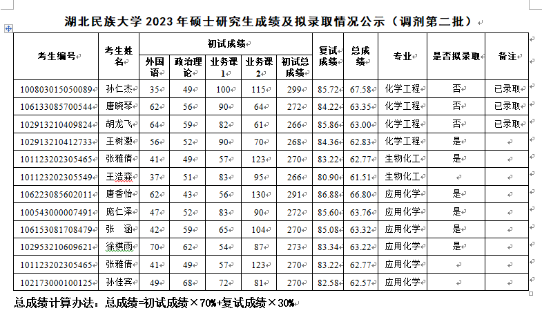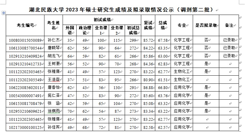 365电子娱乐官方网站2023年硕士研究生成绩及拟录取情况公示(调剂第二批)