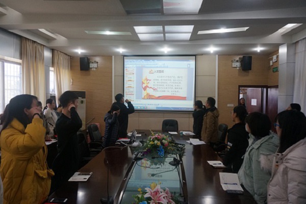 在交纳党费,重温入党誓词后,全体成员诵读《党章》第九章第五十条,第十章第五十一、五十二条。接着,刘恒带领大家学习“州委七届七次全会暨州委经济工作会议精神”,并围绕“七个着力”传达此次会议精神。张艺馨领学“习近平总书记在中共中央政治局专题民主生活会上的重要讲话精神”。覃昕带领学习“国家主席习近平二O二0年新年贺词”。彭召元带领大家学习教育部等七个部门印发《关于加强和改进新时代师德师风建设的意见》的通知。在民主议事环节,全体党员围绕“如何始终保持共产党员的政治本色和前进动力展开交流”和“加强和改进我校师德师风建设”展开交流和讨论。